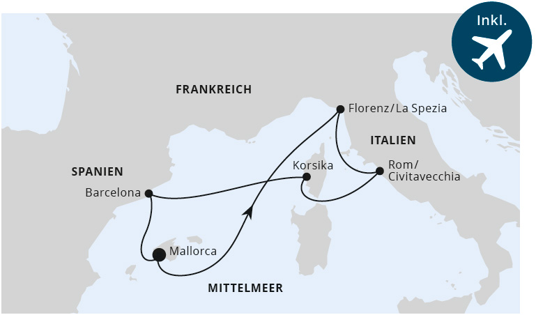 7 Tage Mediterrane Schätze ab Mallorca AIDAcosma | Mai bis Juli 2022 ab / bis Mallorca ab 999 €* p. P. inkl. Flug inkl. 50 € Bordguthaben mit dem Aktionscode REISELUST**