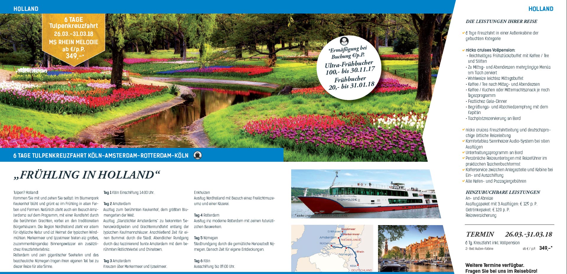 6 Tage Tulpenkreuzfahrt vom 26.03.-31.03.18 auf der "MS RHEIN MELODIE" ab €/p.P. 349,-*