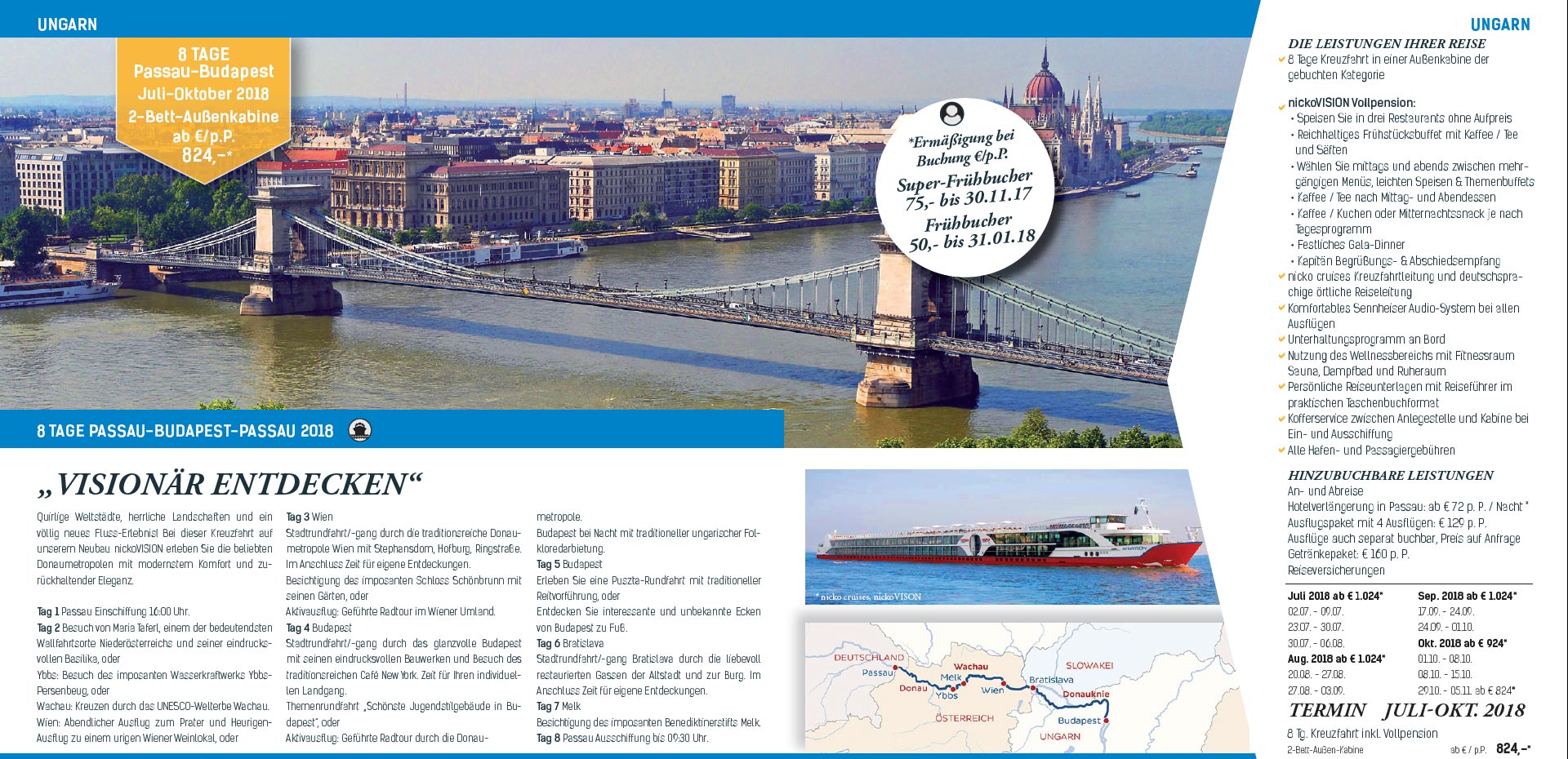 8 Tage Passau-Budapest von Juli - Oktober 2018